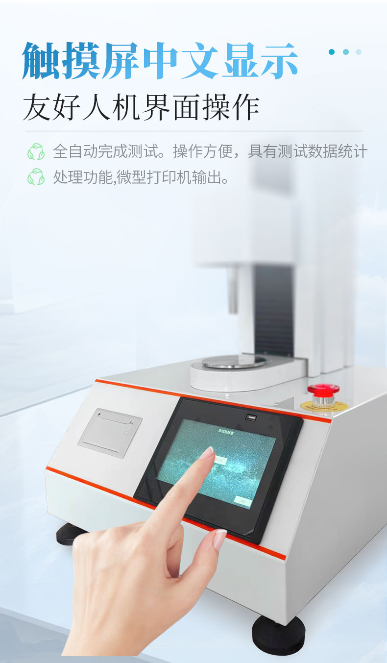 3、大觸摸屏中文顯示,友好人機界面操作。實時顯示測試曲線,全自動完成測試。操作方便,具有測試數據統計處理功能,微型打印機輸出。