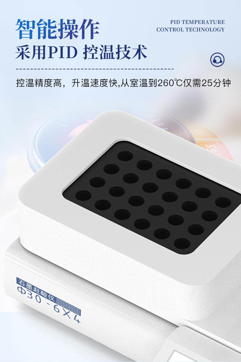 采用PID 控溫技術,控溫精度高,升溫速度快, 從室溫到260℃僅需25分鐘。