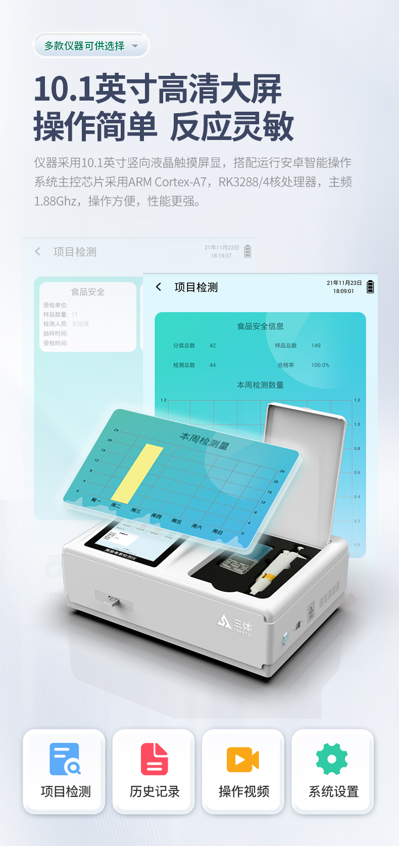 山東三體儀器有限公司為您提供食品安全檢測儀,農藥殘留檢測儀,土壤養分檢測儀以及植物養分檢測儀器等快檢設備