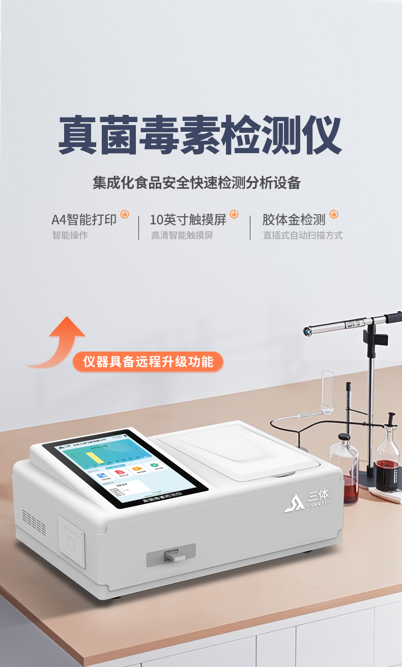 山東三體儀器有限公司生產的真菌毒素檢測儀應用競爭抑制免疫層析的技術原理,通過就是通過待檢測物與抗體結合的方法,分析待檢樣品中真菌毒素殘留。可快速檢測糧食、飼料、谷物、食用油、調味品中如玉米、大米、小麥···