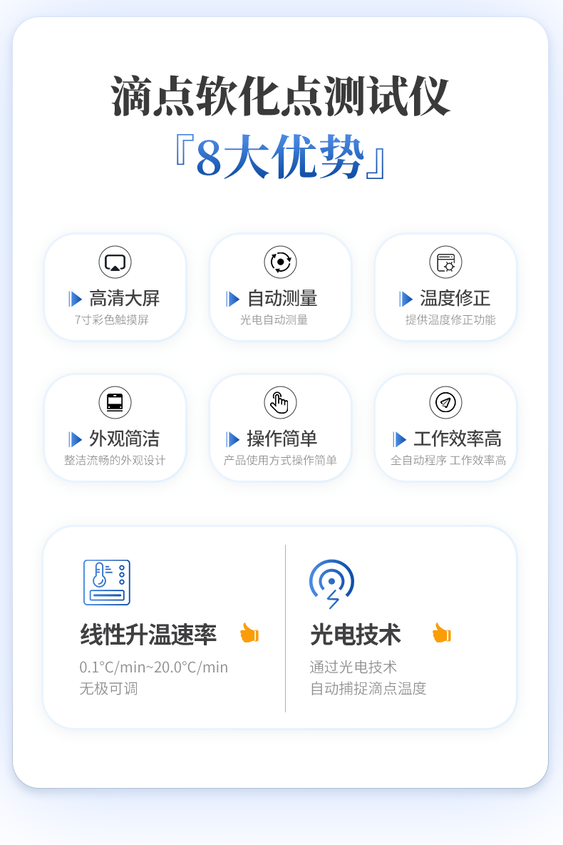 本儀器采用全電腦控制,全自動測量,通過光電技術,自動捕捉滴點溫度。
