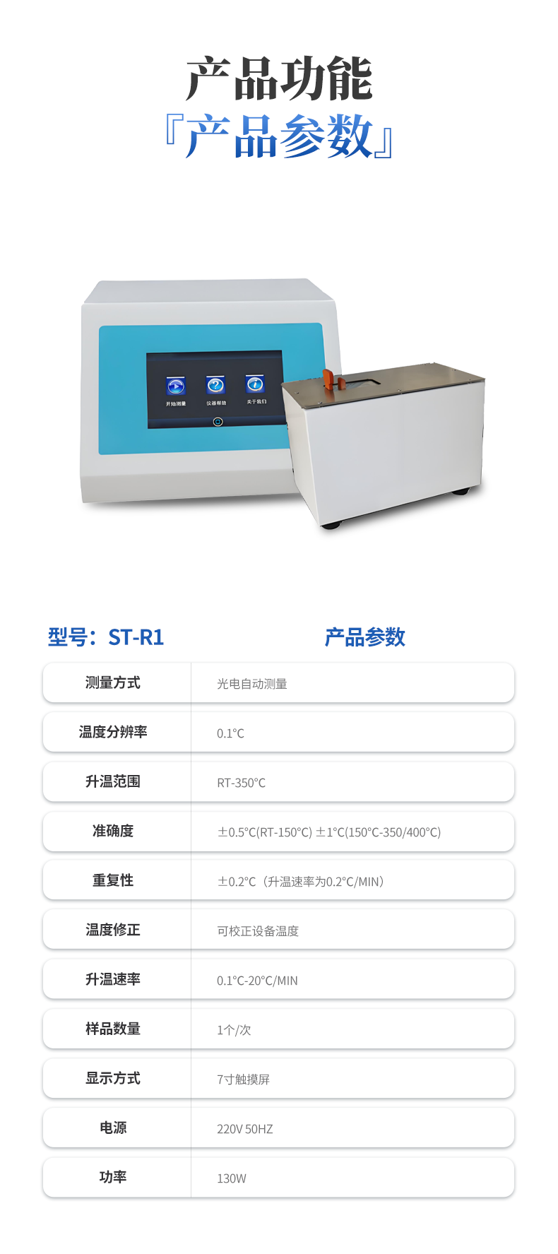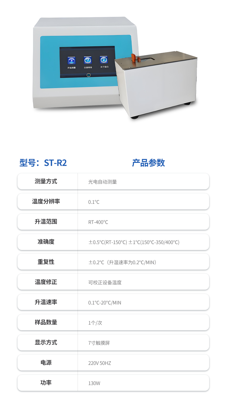 1. 7寸彩色觸摸屏,直接顯示滴點軟化點溫度。